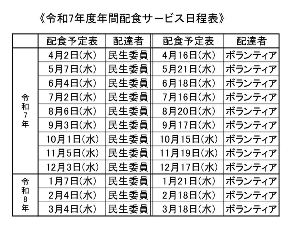 配達は、民生委員と配達ボランティアの皆さんが行っています。